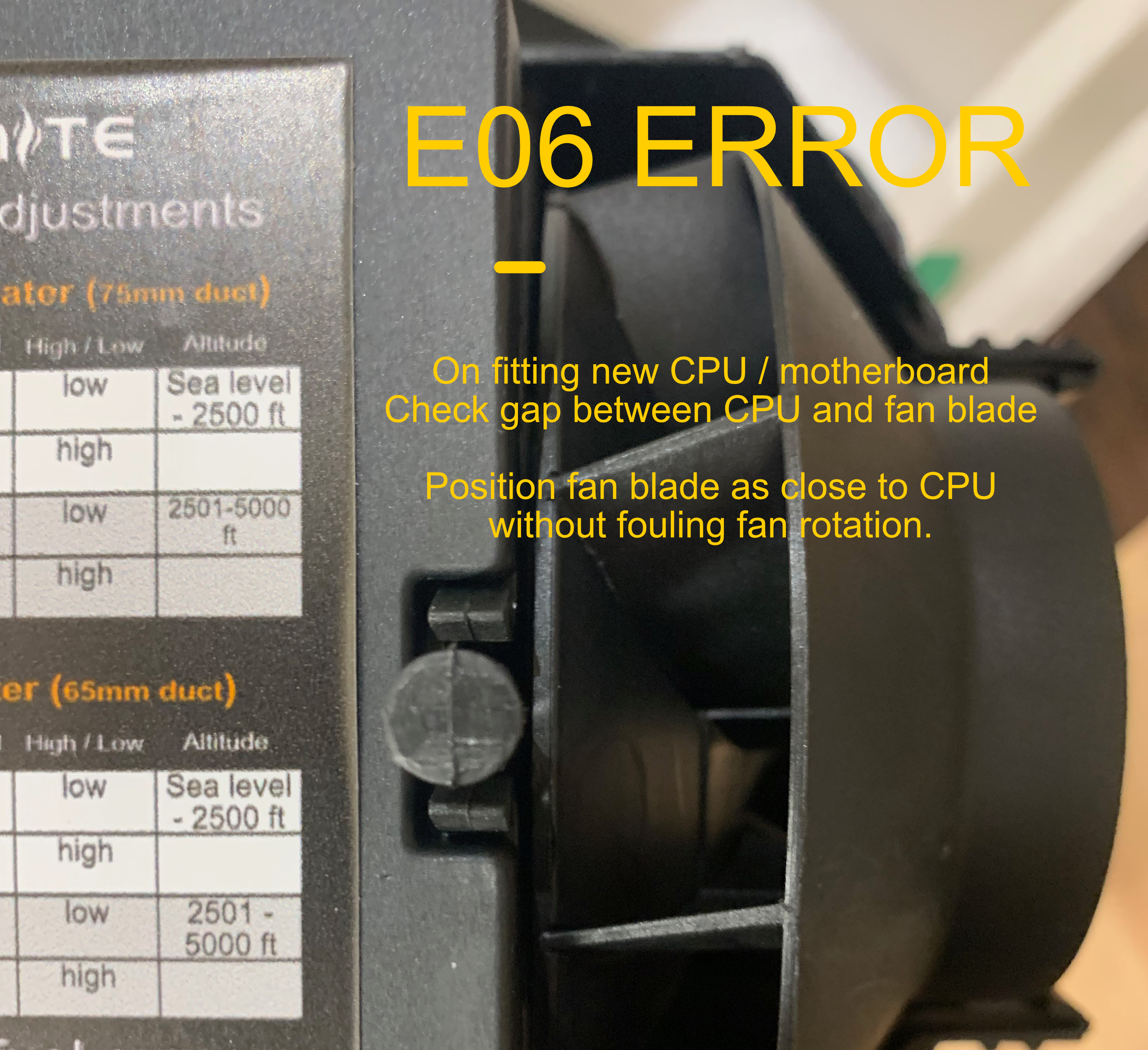 On heater first start after fitting the new CPU / motherboard you may receive an E06 error.