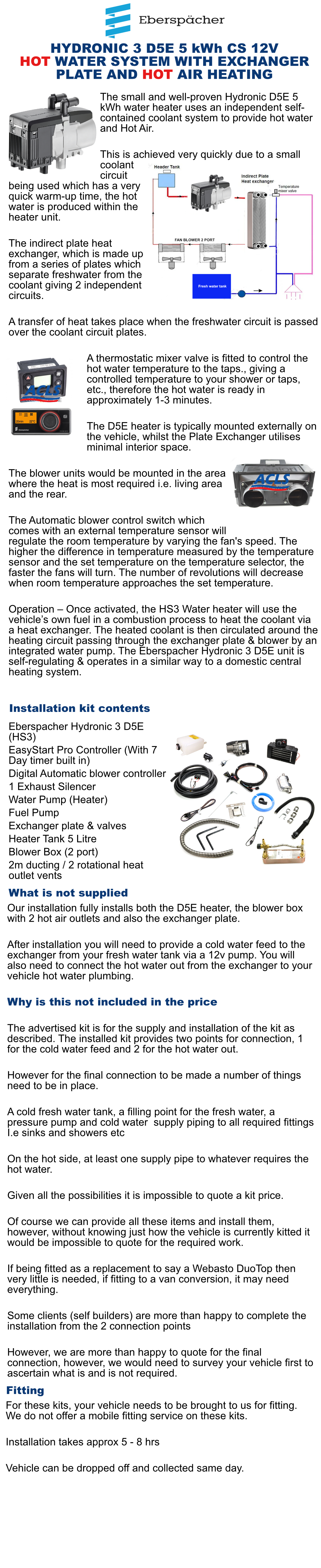 HYDRONIC 3 D5E 5 kWh CS 12V HOT WATER SYSTEM WITH EXCHANGER PLATE AND HOT AIR HEATING